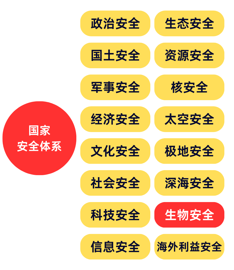 中华人民共和国生物安全法》明确,生物安全是指国家有效防范危险生物因子威胁,保障人民生命健康和生态系统稳定的能力,涵盖八大领域: