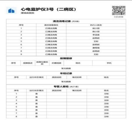 现在,每一台医疗设备都拥有专属“电子身份证”。无需繁琐操作,手机扫码即可快速调取设备核心信息:从设备基本信息、入科时间记录、详细操作流程、规范的使用方法及注意事项,再到日常清洁维护、年检记录、专管人查检、故障维修日志系统自动同步存档,形成完整的电子台账,方便随时查阅、追溯,确保信息随时更新、清晰可查。